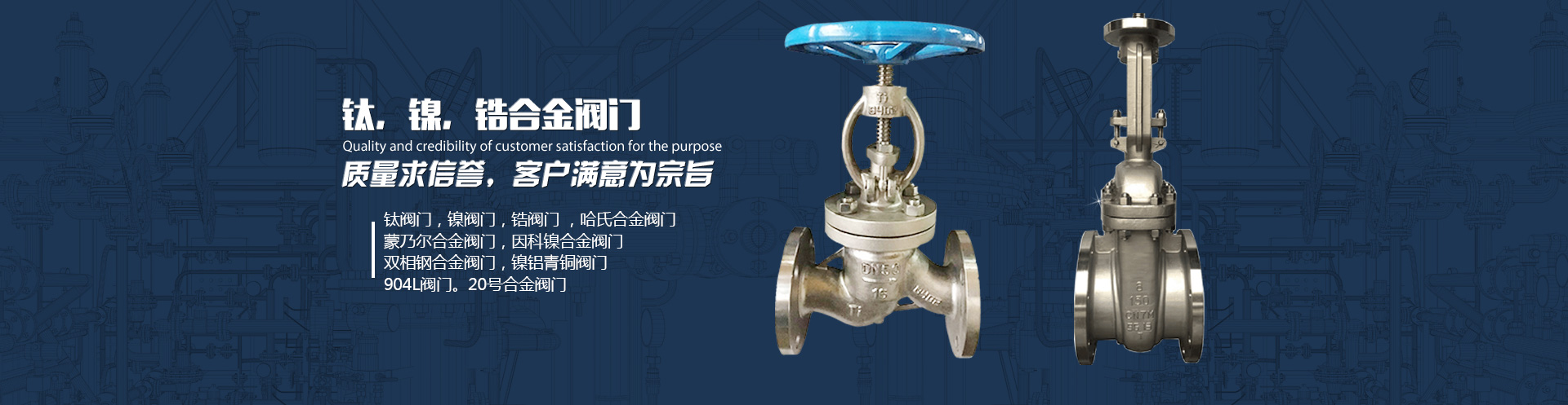 公司的主導產品特殊材料系列閥門有:鈦和鈦合金系列閥門、鎳及鎳合金系列閥門(哈氏合金、蒙乃爾合金、英科乃爾合金)、鈦閥門、鈦合金閥門、鈦球閥 ,鋯材、鉭材、雙相鋼、C4鋼、ALLOY20合金及鎳基合金閥門等......?查看詳情>>